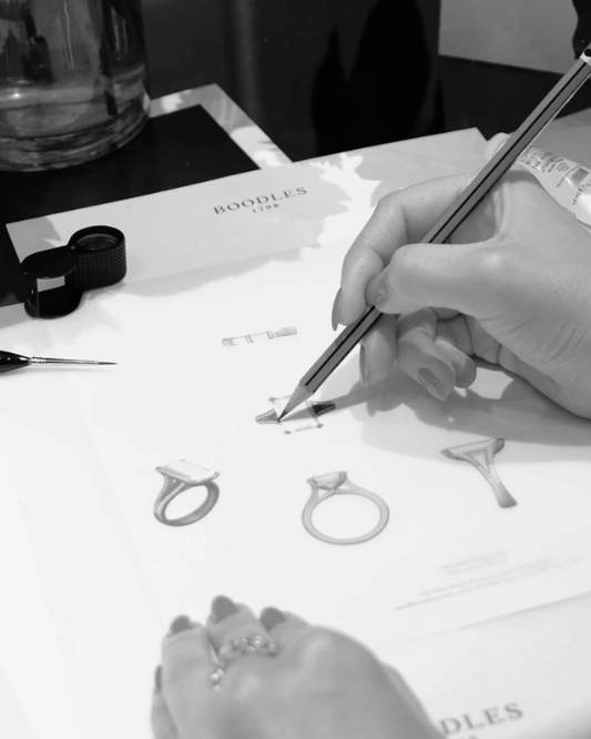 Our bespoke journey begins with a consultation with our Head of Bespoke, during which you will be able to share ideas and explore Boodles range of fine jewellery pieces for inspiration. Our team will guide you through each step selecting design direction, materials and gemstones.